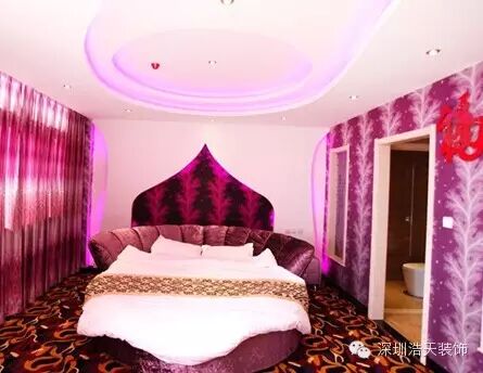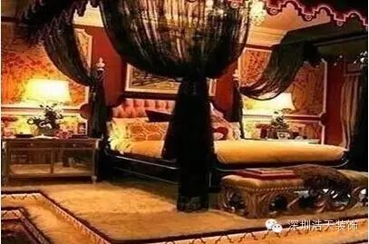 下图这是网传比较多的内部图,有点模糊,大家就凑合着看看吧~长毛地毯舒适柔软,奢华的四柱床配上四面拢起的黑色薄纱,尽显优雅与神秘,整个房间在金黄色的灯光衬托下,给人一种身处宫廷的感受(哎呀~突然觉得自己好有文采,能写出这么文雅的形容词,哈哈哈~)。不过楼主不太相信这是教主的婚房,你说谁会在婚房挂黑色的蚊帐,看起来不太吉利的样子,就算教主baby答应,他们的爸妈也不同意吧~