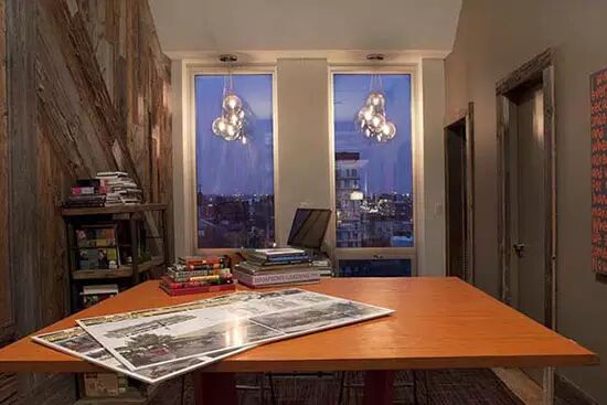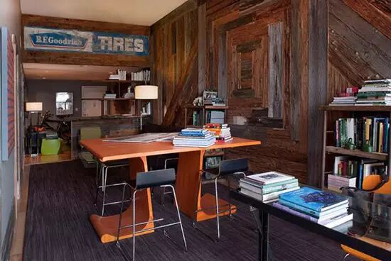 皮质沙发、绿色地毯,呈现出复古而怀旧的画面。