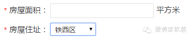 填写需求软装房屋的面积以及房屋住址