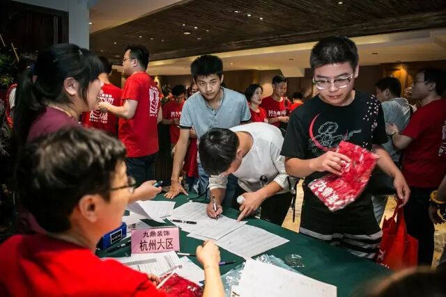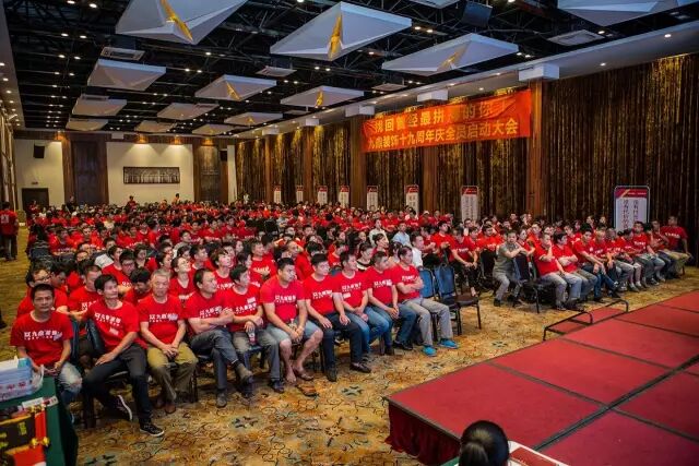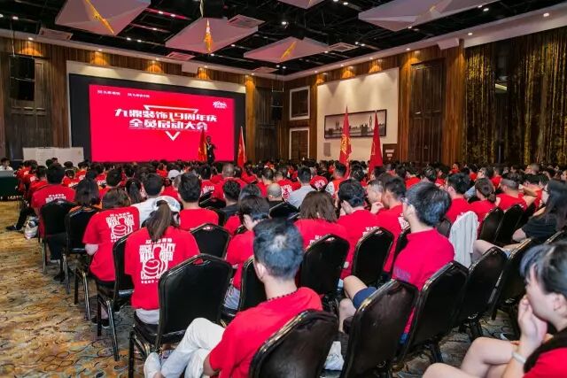 风雨同舟铸辉煌,同心同行筑梦想。2017年7月27日,九鼎装饰十九周年庆启动大会在杭州瑞莱克斯大酒店正式拉开帷幕。上午九点整,九鼎装饰所有分公司家人代表步入会场,整齐的九鼎装饰T恤让会场氛围喜庆而温馨。
