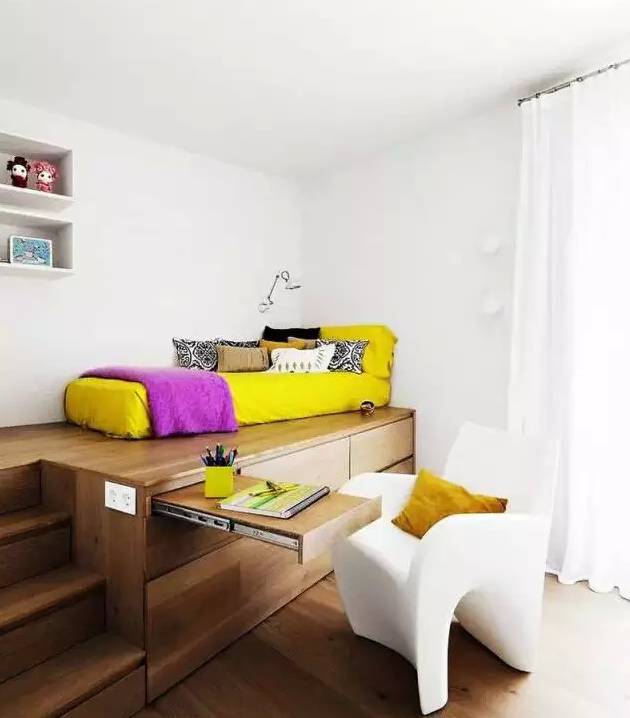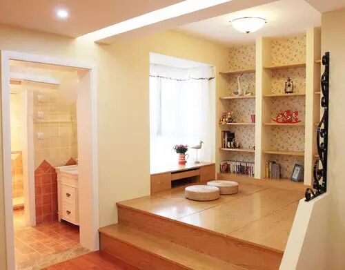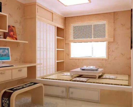 ▲与榻榻米结合,会客时放上饮品,岂不是比茶几更实用?