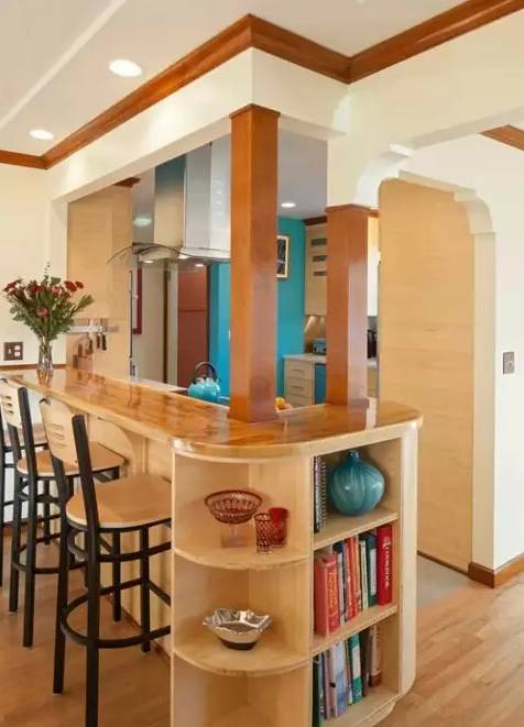 ▲如果家里空间够大,做一个大一些的吧台,当做餐桌用是个不错的选择~