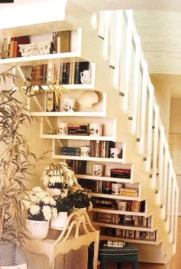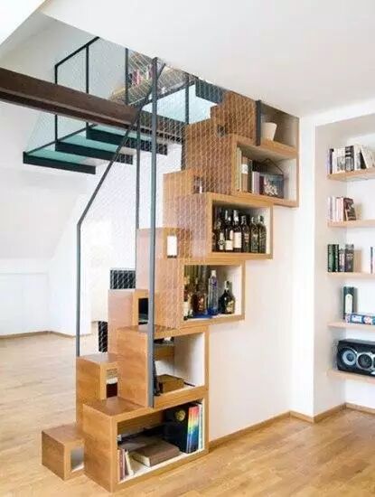 ▲楼梯处收纳,最为常见也最常见。只是若摆上酒品,一定要小心熊孩子哦~