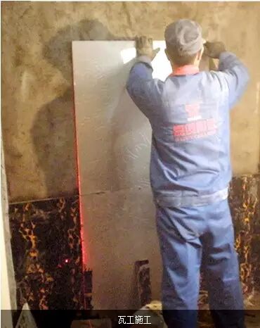 3、挂线铺贴做到平整方正,浸泡墙砖、地砖(釉面砖)。