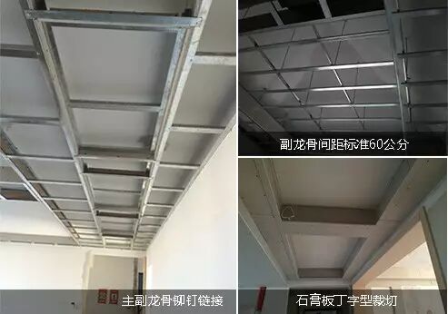 2、副龙骨间距标准60公分,跨度超过120公分的距离,加吊筋固定。