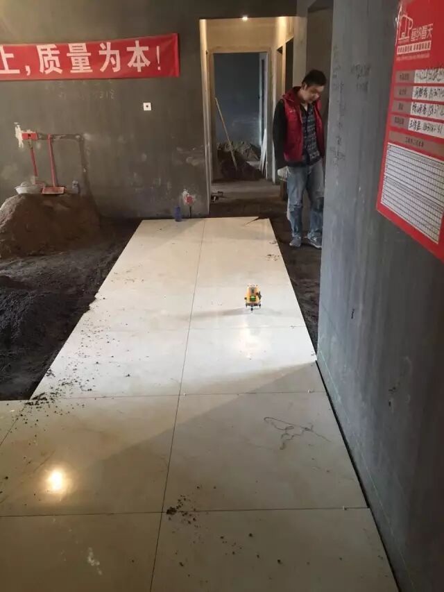 (3)地板安装时,有条件的话,地板的切割一定要在走廊.在室内切割地板对墙面的污染比较严重,类似的还有橱柜的人造石台面的切割.