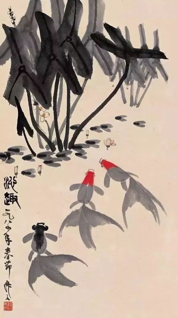 △吴作人的《池趣图》,