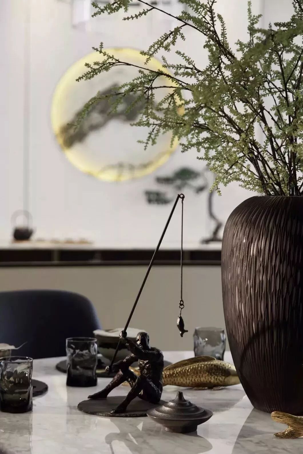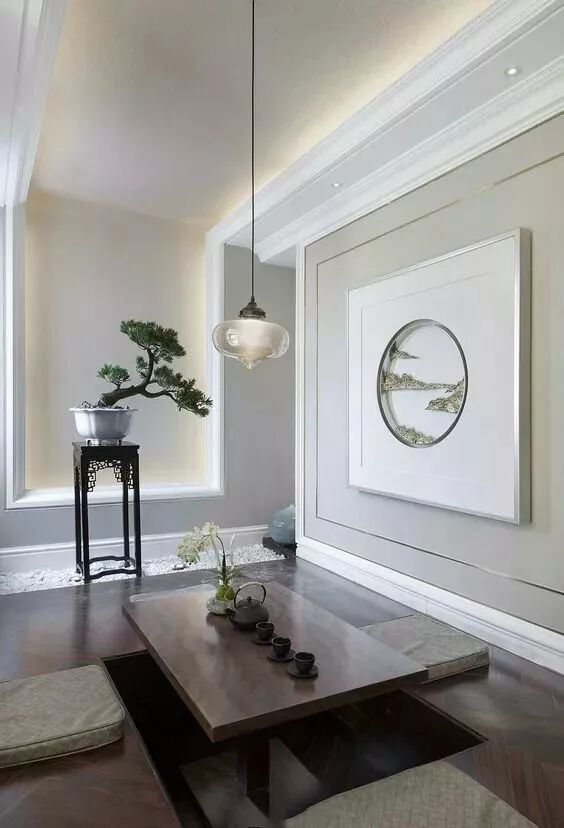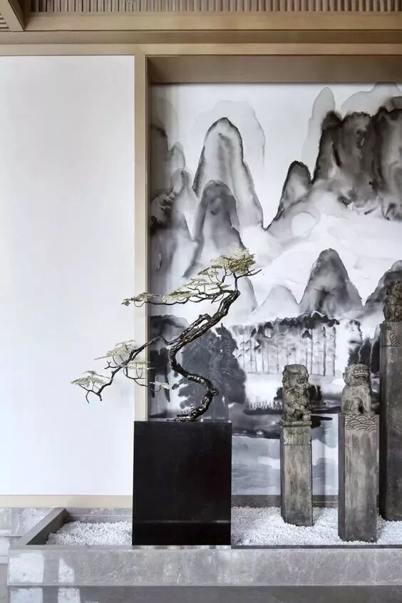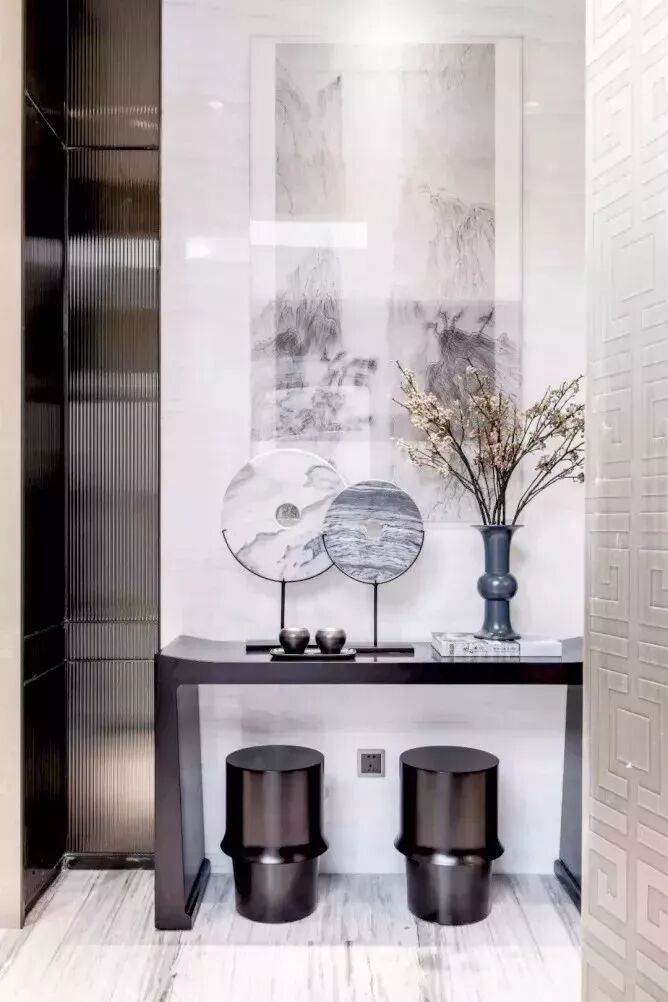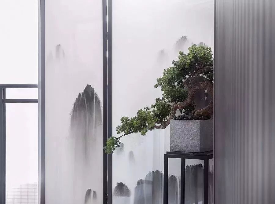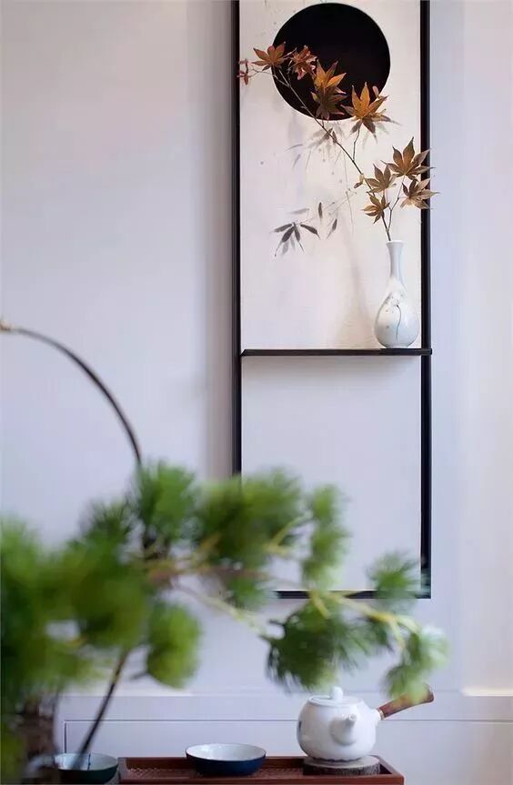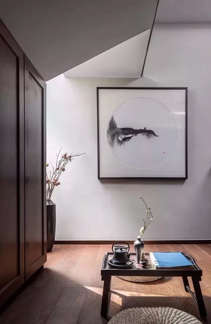 恰到好处的留白不仅可以给人审美的享受,还能构造出空灵的韵味,一面白墙,寥寥数笔,就能形成泼墨般的视觉效果,尽显含蓄端庄的东方韵味。