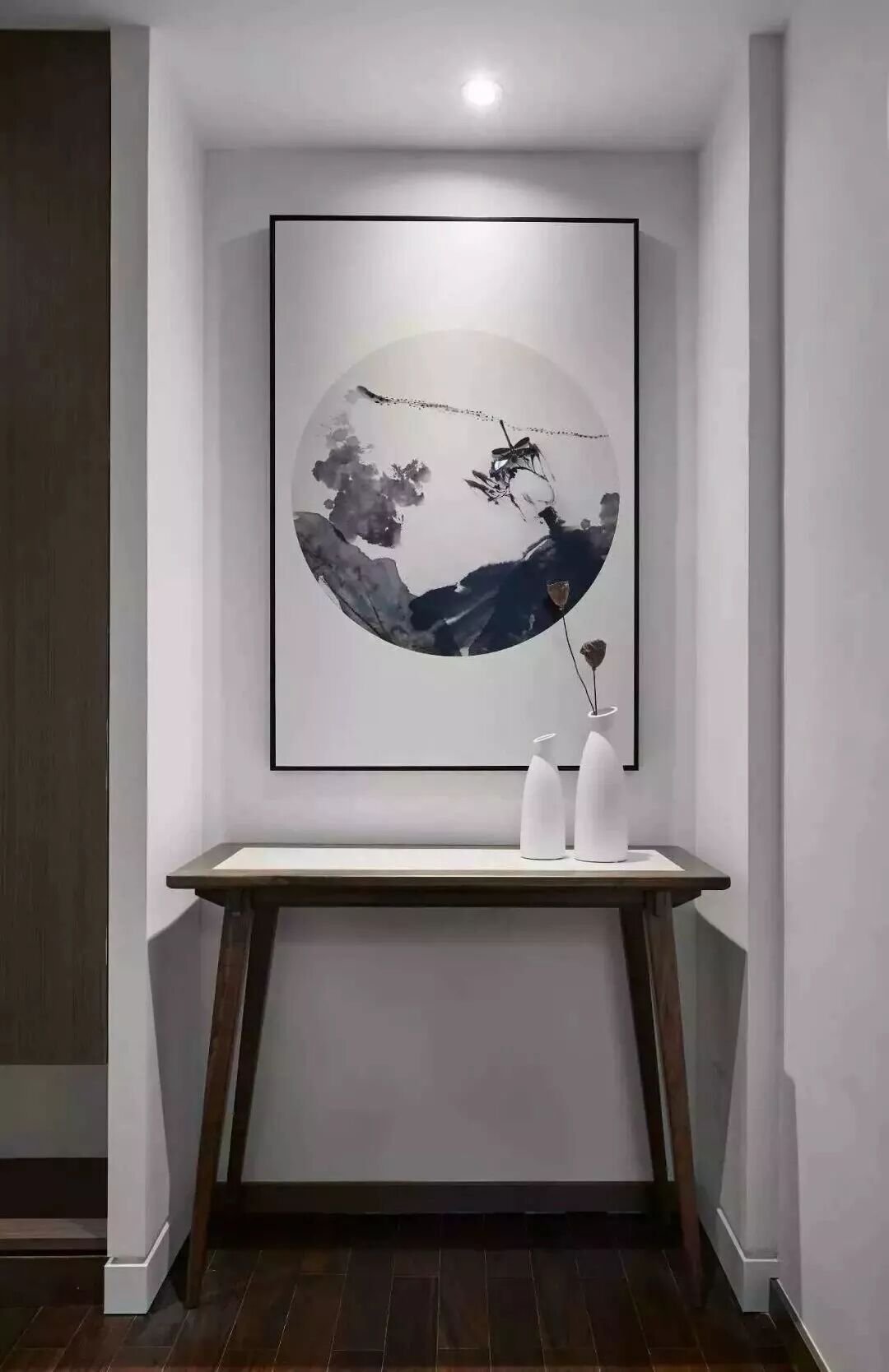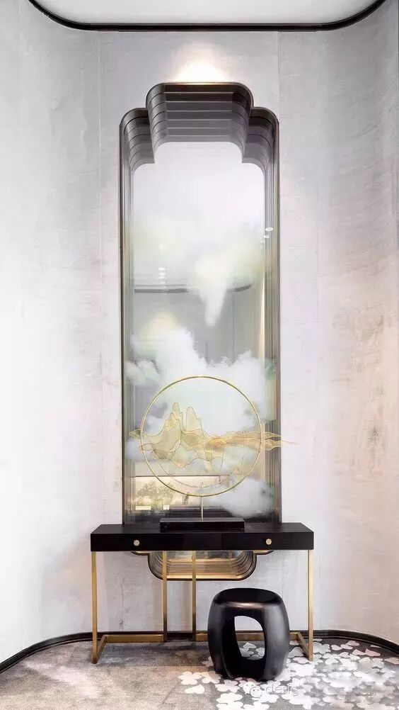 入门玄关区域剥离到只剩最少的元素, 是一种令人感到眼前一亮的设计方式, 不能满,满了则乱。 因此,空间的留白具有很高的审美价值。