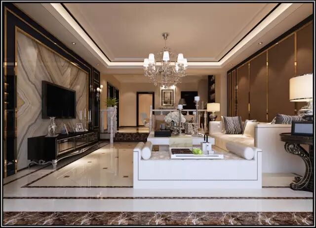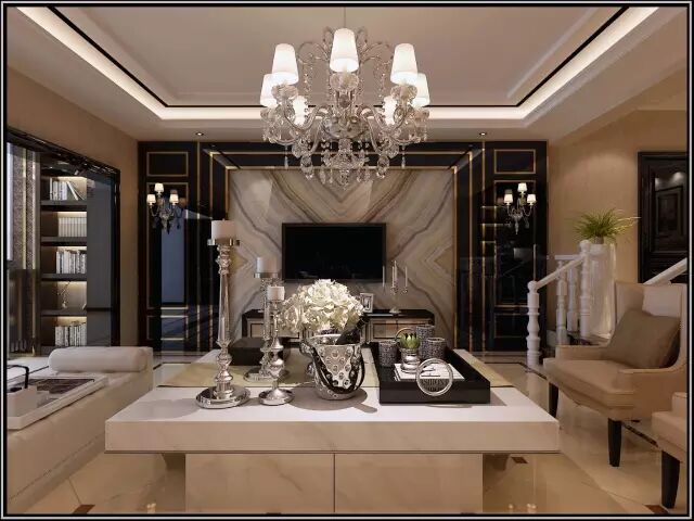 设计师将一些古典构件的抽象形式以新的手法组合在一起,复古欧式吊灯、烛台及欧式电视柜的运用,与古典的设计理念相互融合,充分表达业主的喜好。黄丽江表示室内设计与建筑设计要协调一致,不仅满足现代生活需要,而且强调艺术性。