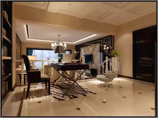 经典的黑金白搭配在当下,受到越来越多的年轻人和商业人士的偏爱。黑金白配色体现了主人的干练,书房也给人以干净整洁的印象,这样的配色给人以宁静,让人能在安静的环境中安心阅读或工作。墙面的装饰画增加了书房历史性和文化性,肯定了装饰对于视觉的象征作用,装饰又重新回到室内设计中,装饰意识和手法有了新的拓展。