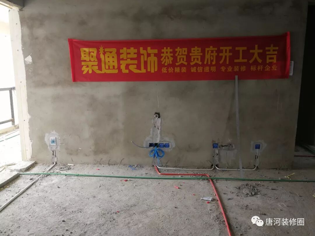 聚通水电标准:按图施工,横平竖直、合理弯道 、通管通线 ,严禁管中任何接线,严禁强弱混穿,全屋水管通水并进行1小时1.0MP的压力测试。电路验收并作电路保护——聚通底合定制护板。