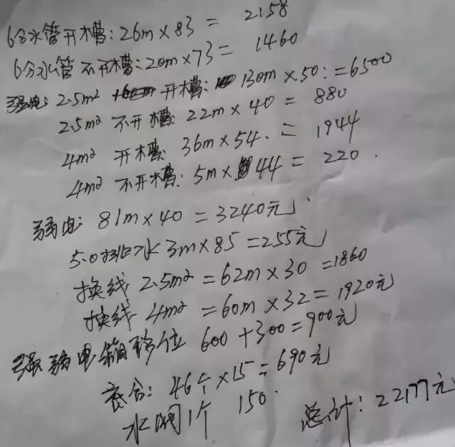 举个例子:有业主朋友反馈:水电改造别人用8000,为什么我要用20000?