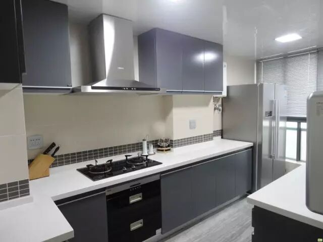 很多人在厨房装修时,瓷砖只贴到半墙。但其实,贴全墙的瓷砖,才有效防止油烟。贴了瓷砖不会让墙壁变黑,而且容易清洗,不怕水。用清洁剂轻轻一喷一擦解决。