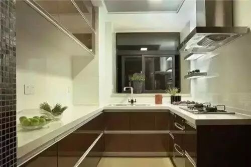 最合理的厨房布局依次是清洗区、切菜区(准备区)、烹调区流水线的摆列。洗漱区不宜离烹调区太近,因为水气会弄到燃气炉。L型的厨房是比较理想的设计。