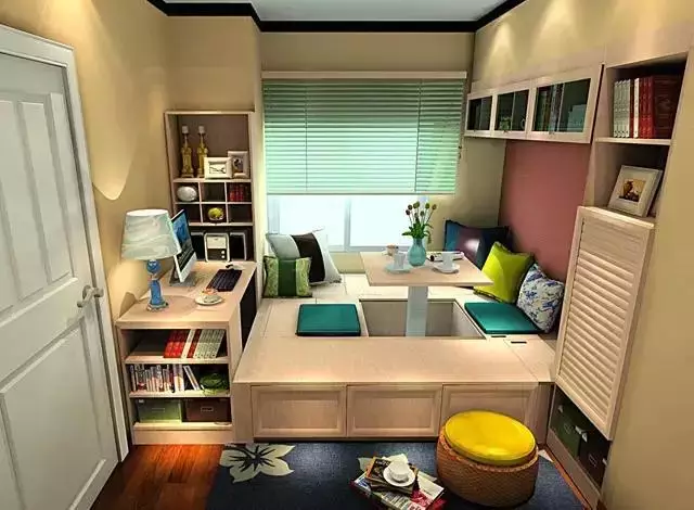 榻榻米底下全部都是储物空间,这些空间不亚于一个大衣柜的收纳容量,再多杂物都能装下。实用!