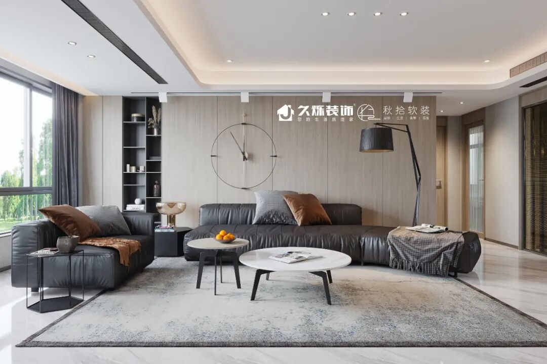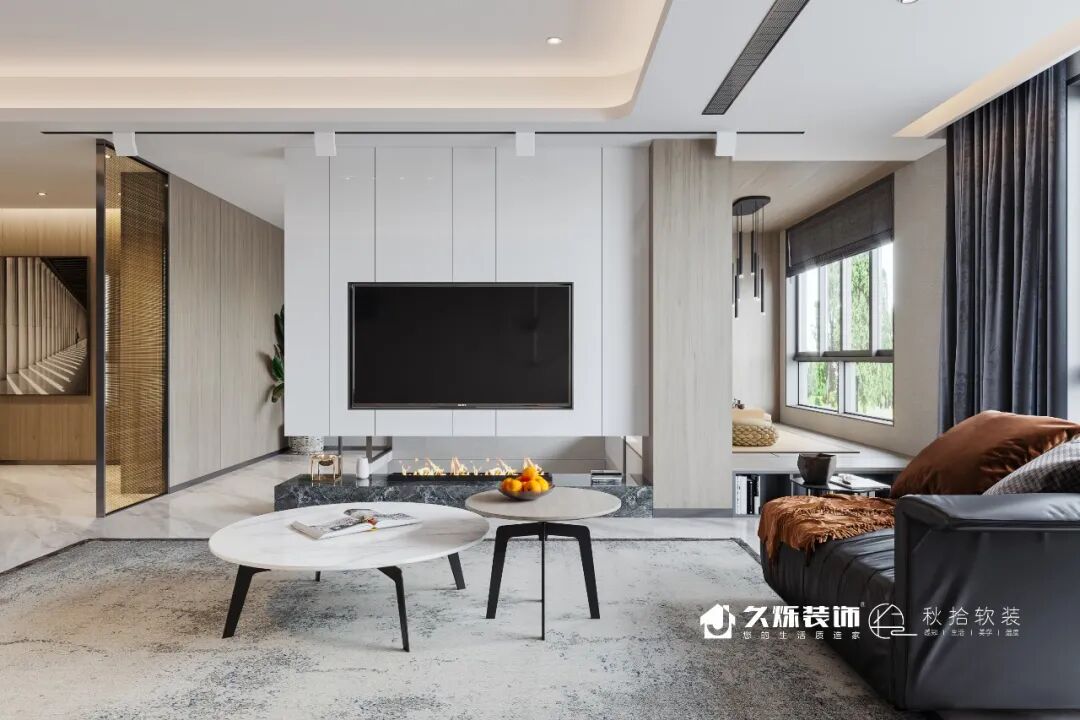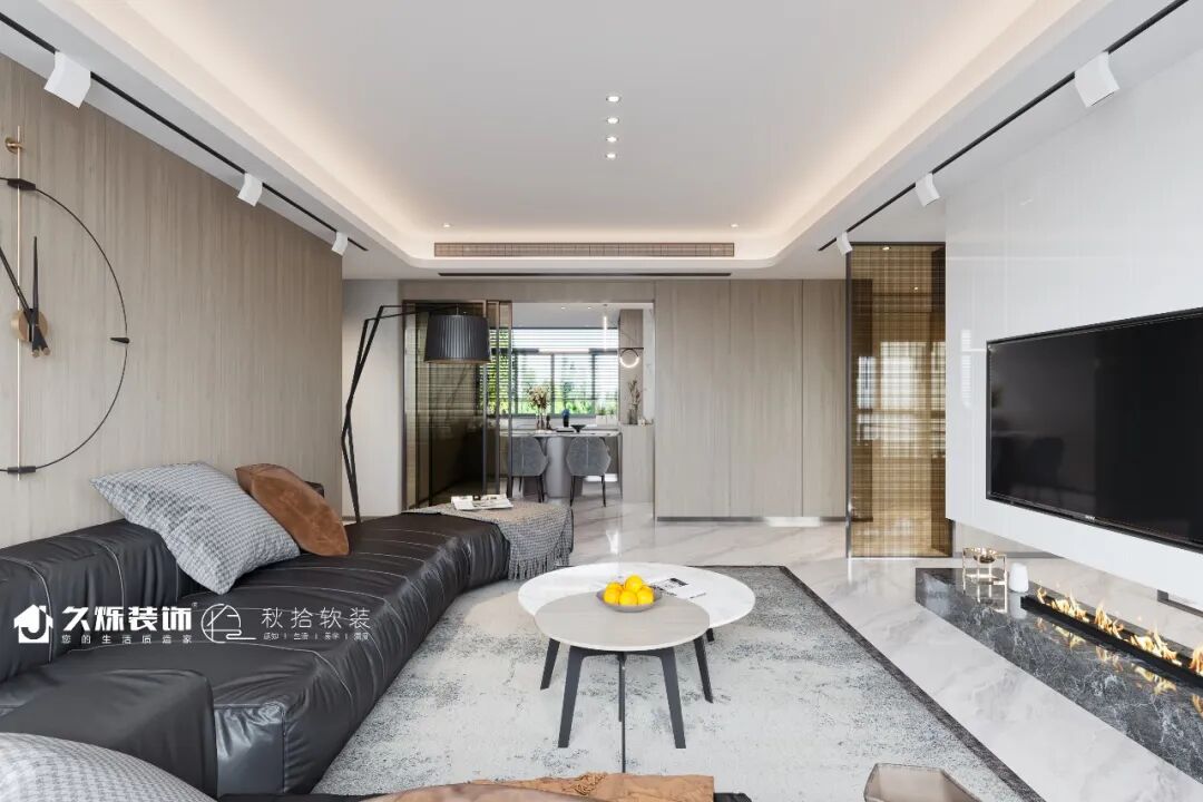 木饰面延伸至空间顶部,平面处的镂空,又创造着轻灵的气氛,放上书籍,在客厅中各自静候着,让空间的功能性更加多元化。