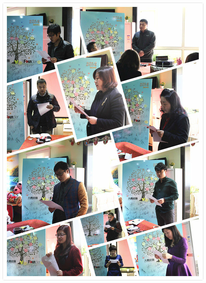 总结大会在9点整正式开始,各部部长上台针对一年做了深刻的工作总结以及2014年的工作计划,总结之后将自己新年愿望贴在了愿望树上,之后竟然有了小小的惊喜,每个人针对自己的愿望都有一次预测机会,大家如愿以偿,抽到的幸运标签上都预示着马年招财进宝,马到成功!最后,三位领导都对2013年做了最后的总结,2014年将在全员的努力下迈上一个新台阶!