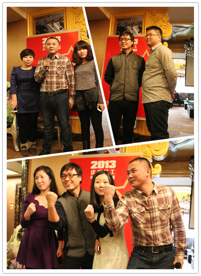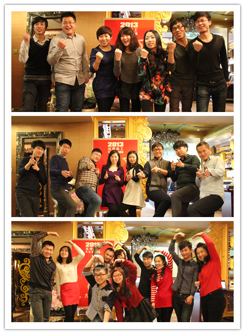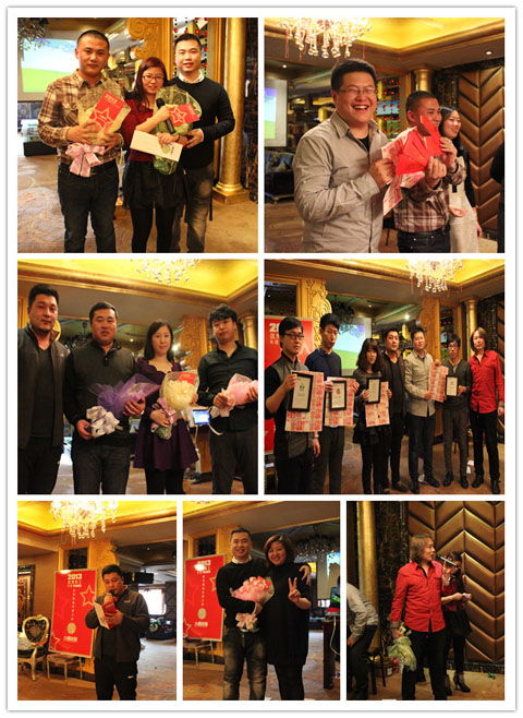 12点30分,表彰与联欢正式开始,三组的节目终于揭开神秘的面纱,以各自最好的表现给了所有家人再次带来惊喜甚至狂喜,开场舞《猜猜我是谁》将联欢的激情瞬间点燃,掌声呐喊声不绝于耳,三句半、舞蹈、游戏。。。精彩不断,欢乐无限。节目中间我们将2013年的所有优秀员工请到舞台,送上尽孝红包和花束。在这家人欢聚的时刻,我们举杯同庆,将这一年的苦和累统统洗净,留下的都是美好的回忆。。。。