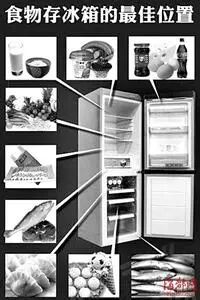 首先你应该清楚,即便你的冰箱足够冷,但是冰箱中各个部分的温度,仍旧会因为它们与制冷装置距离的不同而不同。根据下面这张图来放置食物,它们的保鲜时间将会更长。