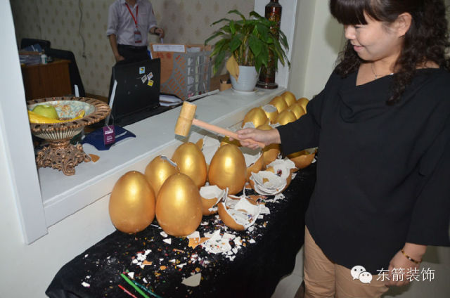 签单的业主兴致勃勃的参与砸金蛋!