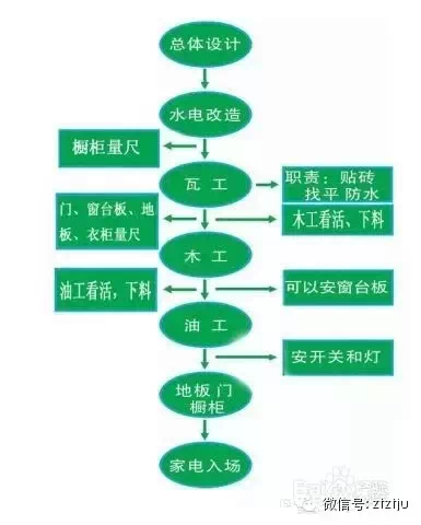 备注:流程中有叠加和交叉,以上只是一个笼统的过程,其中需要提前准备好主材、根据装修公司要求提前准备好,也需要注意每个步骤的衔接和完成质量,隐蔽工程的监督等等。