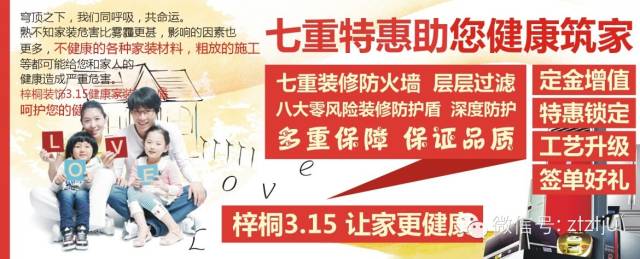 梓桐装饰推出3.15健康家装防护盾活动,30余位行业精英设计师、金牌施工队成员、专业工程监理,国内一线品牌材料、德系辅材、让千家万户充满绿色的幸福。