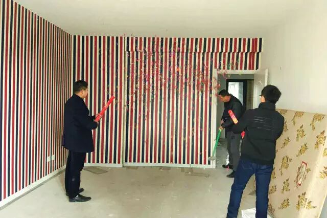 ▲美酒,礼炮,横幅,衣帽柜,储物柜,展示板,灭火器……开工现场严格按照公司标准布置,规范管理。