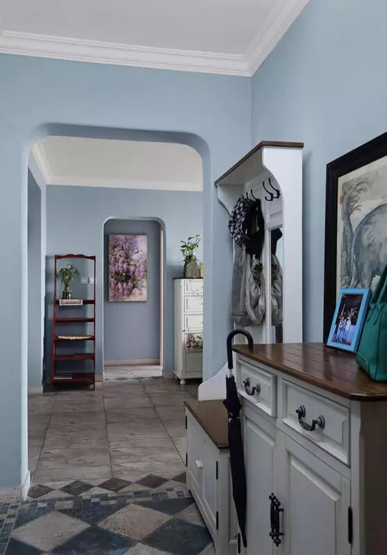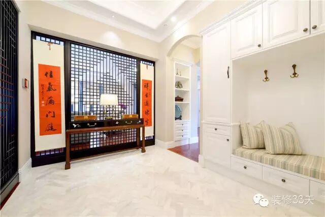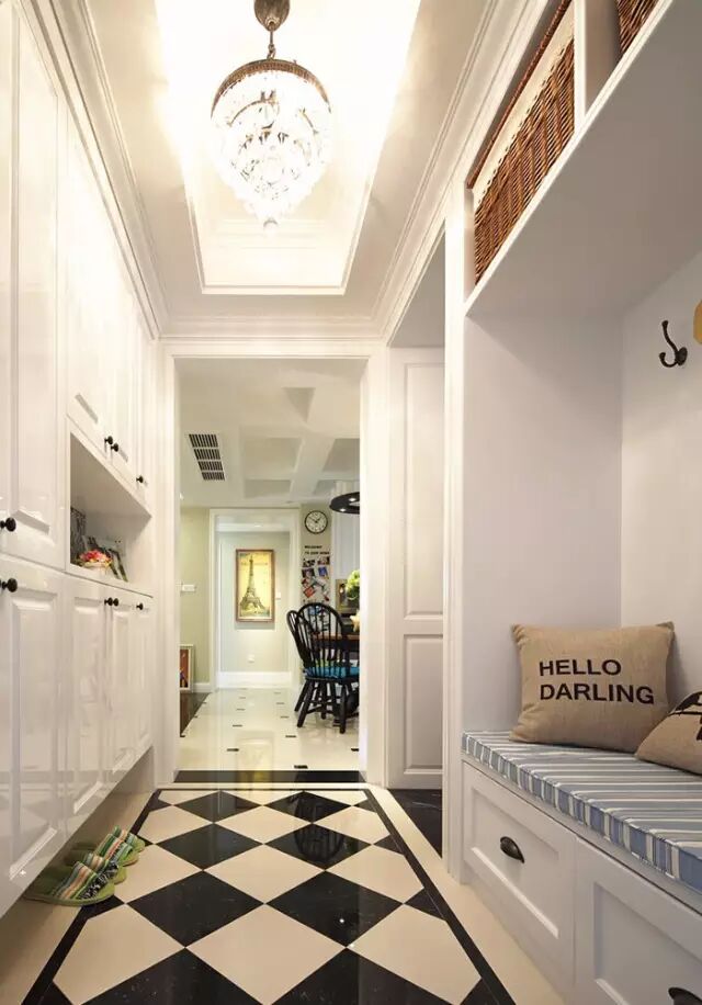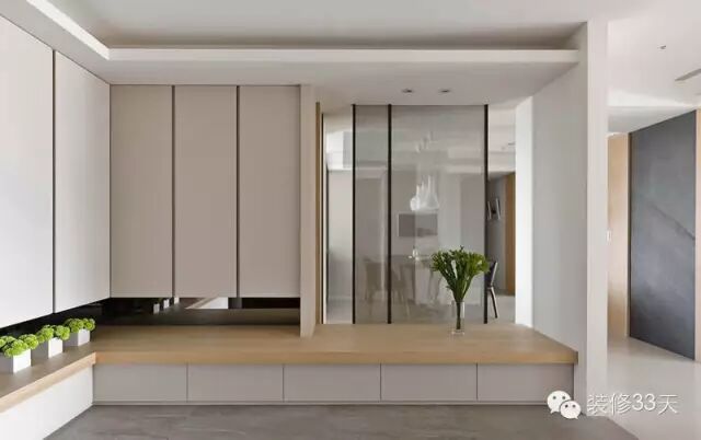 现在室内的玄关,也是过渡作用,也有保护隐私的作用,另外也是简单地接待客人、接受邮件包裹、换衣、换鞋、搁包的地方。