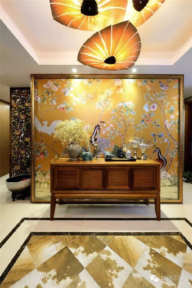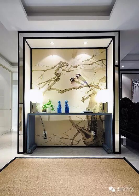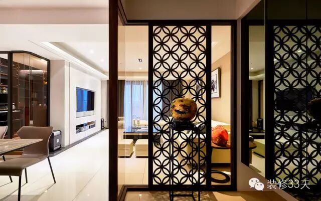 ▲ 中式装修中,如果进门是厅,竖一道屏风是常用的手法,作用和形态很像于过去的「影壁」