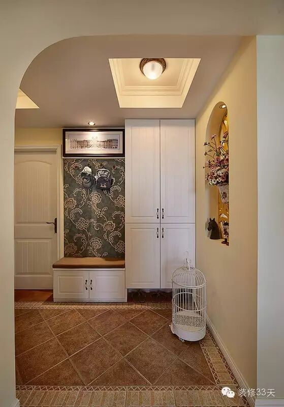 ▲ 玄关地面可以和内部一致,也可以单独处理,比如用瓷砖拼花,用花砖,用不同于室内的材料等等