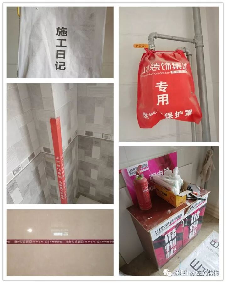 对于公司规范,严格贯彻执行,山水装饰集团的储物柜,物品摆放合理规整,方便查找;煤气表的保护、贴好瓷砖后的阳角条保护、以及水路标示带(防止后期因墙面打孔而破坏水管与电线)都做的比较到位;
