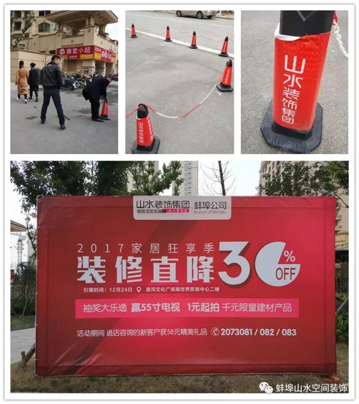 刚到翰林华府小区门口,就看到山水公司的显眼的招牌,从小区门口围挡的标示柱,到小区内的大幅“装修直降30%”的招牌广告,确实吸引到不少业主的关注与目光,为山水市场部的家人们点个赞;