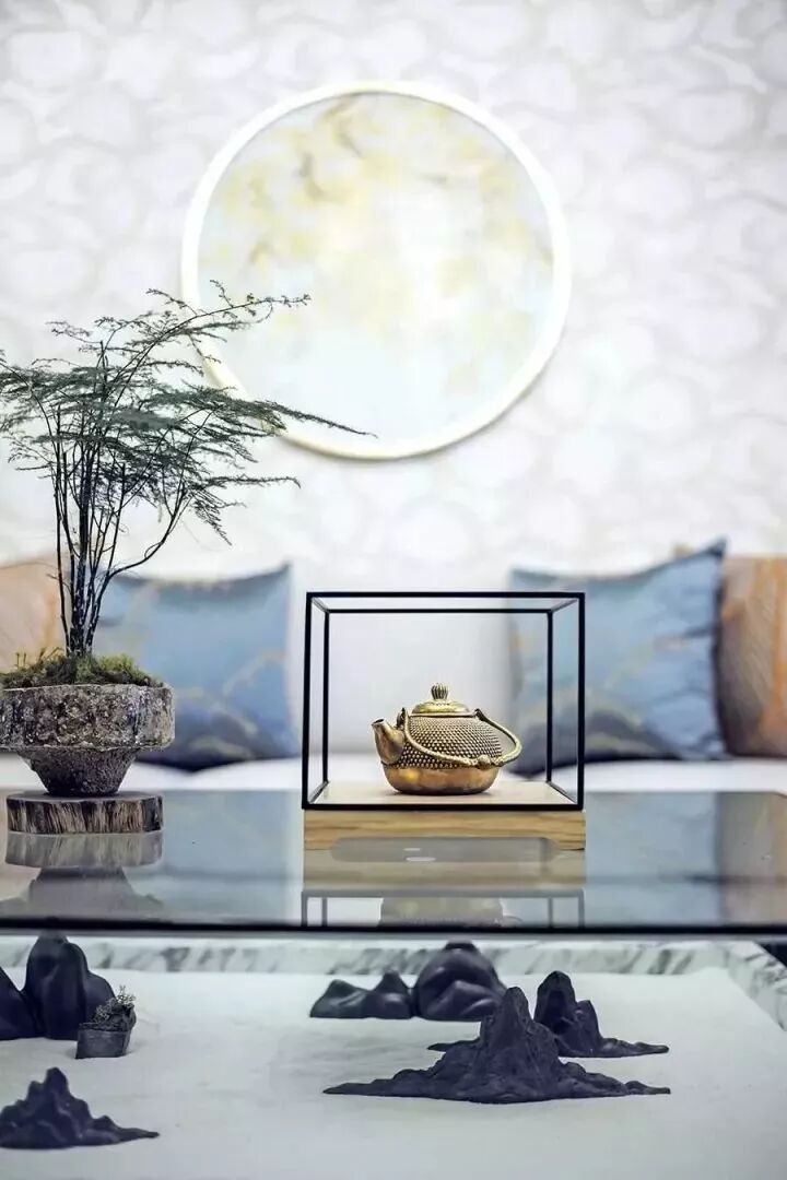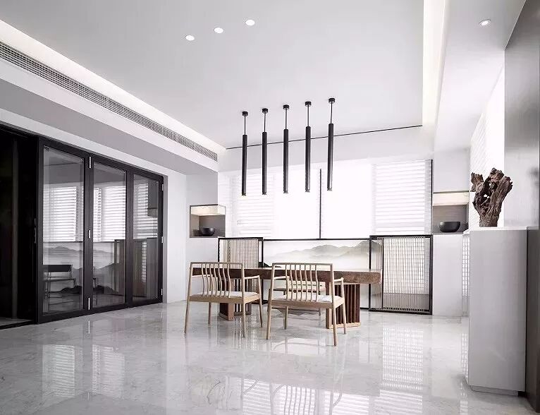 留白、水墨等传统元素的运用,能够营造出一种禅意的氛围和意境,无形中拓宽了空间的层次布局,给人留下无限遐想的余地。