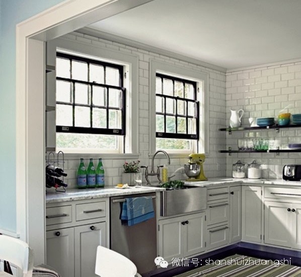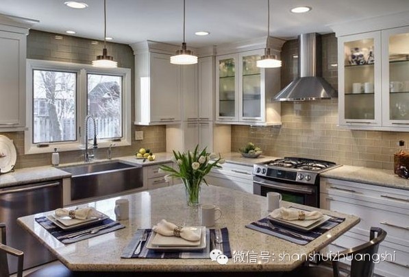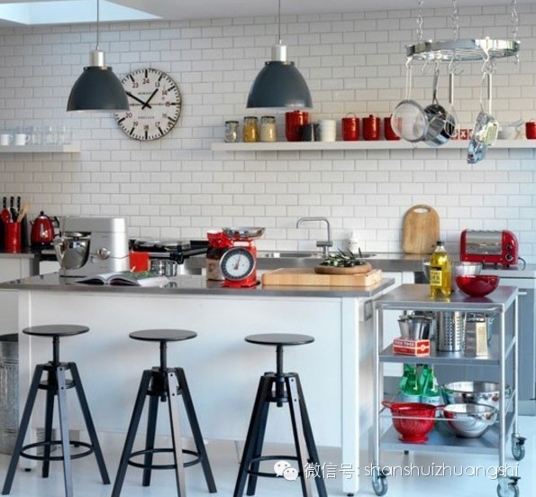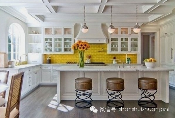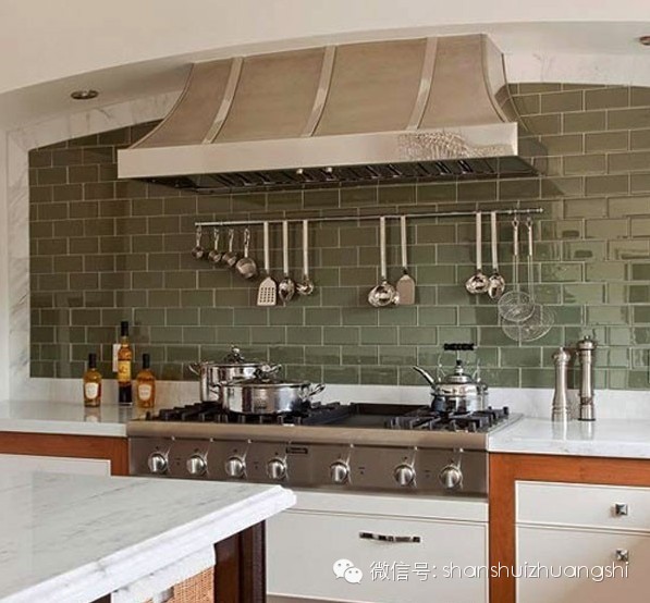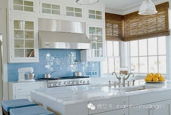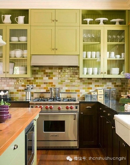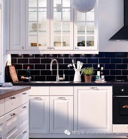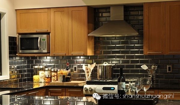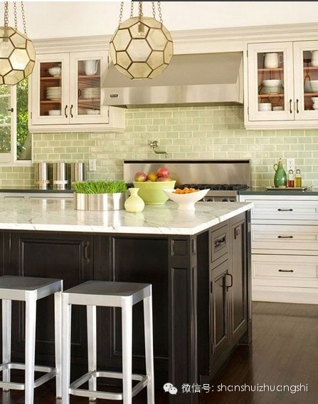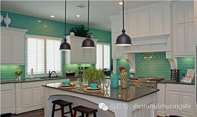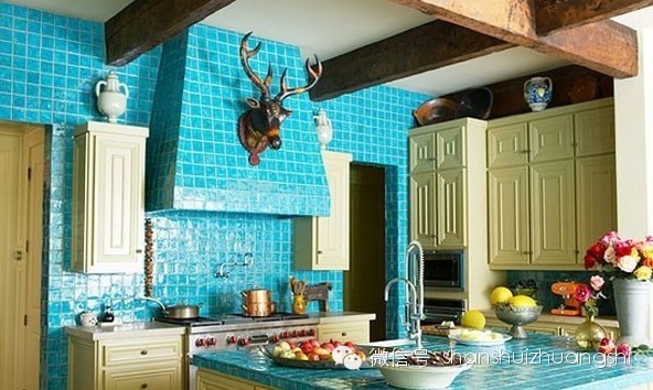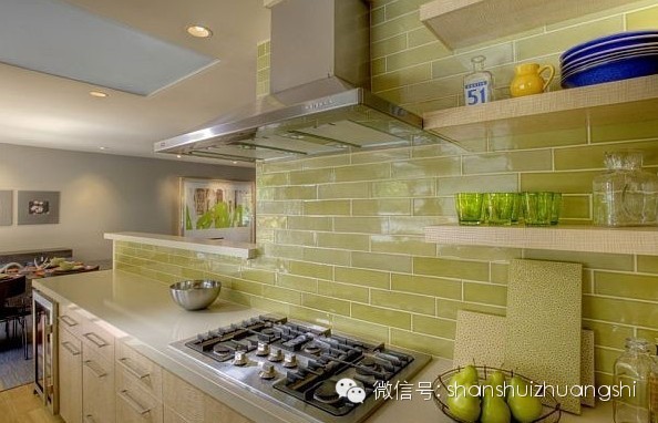厨房不论大小,好的生活气氛很重要。如何使这块“美食天地”充满色彩和情趣,就要看你的独特巧心思了。厨电、橱柜已无法升华的话,不妨在墙面上做做变化,彩色的、跳跃感的、时尚的墙面设计会让你的厨房空间变得更丰富多彩。瓷砖花色繁多,不论是整面墙单色瓷砖铺贴,还是多色瓷砖的拼贴,不同的铺贴方式都能收到意想不到的装饰效果,简约中显精致,古典中显新潮。