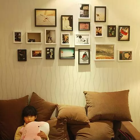 客厅角落,一面空落落的白墙独自矗立,显得格外冷清,不如来一个随心情变换的“装饰画墙”。把家里“流浪”各处的图片搜集起来,放入白色简单相框中,然后把它们全都挂到这面墙上去,客厅很快就“热闹”起来了。