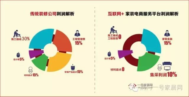 在一号家居网互联网+新模式的开启下,颠覆性击溃传统家装公司,所有产品集中采购,减少中间利润环节,由厂家直通家门的F2C模式。