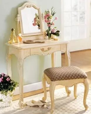 梳妆镜一般都放在卧室里,女主人睡前的卸妆一般也会在此完成。但习惯上镜子不能对床,梳妆镜一般都和床平行而放。至于桌面上的小镜子,则可以随便摆放在梳妆台上。 梳妆台不仅是一件简单的家具,它更可以算是一件摆设在家里的实用的艺术品。精心挑选一款漂亮的梳妆台会增加家居的温馨感。为自己弄一个梳妆台吧,在这块小小的空间里,精心呵护自我,挽留青春匆匆的脚步。 “当窗理云鬓,对镜贴花黄”,美丽的梳妆台是女人的百宝箱,不仅收纳了各种瓶瓶罐罐,更收藏着她的秘密和梦想。有人说,"女人在镜子前是最认真的"。带镜子的梳妆台,记录着岁月的流逝、年华的更改,总是牵挂着女人的柔肠心曲。梳妆台要算是家具中最富于变化的了。 梳妆台一般由梳妆镜、梳妆台面、梳妆柜、梳妆椅及相应的灯具组成。由于现代家庭生活都讲求效率,活动环境距离尽可能缩短,若能设计得当,梳妆台也能兼顾写字台、五斗柜或茶几的功能,可以节省许多空间面积,这类梳妆台造型结构一般自然流畅、朴素大方。