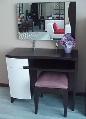 梳妆台的形式多种多样,现在市场上比较流行的主要有单体式、组合式与墙体固定式三种。单体式即为独立的单体设计形式,大小可根据空间及需要确定。组合式主要是将梳妆台与床头柜或与衣柜功能结合考虑的组合设计形式。墙体固定式是以建筑的本身结构条件而设计嵌入墙体的形式,或将其镜柜与台面一并固定在墙上的形式。 目前市场上一些梳妆台有一些附加功能,如镜子可转动,后面有架子可放置化妆品,或者有变化的桌面,放下桌面可对镜梳理,抬起桌面则成为一个穿衣镜等,这些样式相比较而言,令人更感实用而有趣。