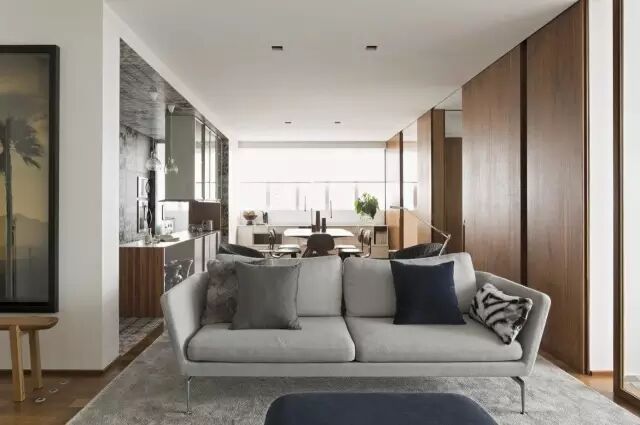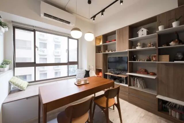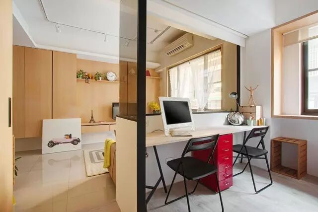 当然了,如果实在是觉得一个厅解决好几个功能一点隐私感都没有的话,那建议大家还可以学习这个案例!那就是采用隔断,把小厅用隔断稍作分隔,然后就duang的出现一个小区域,作为书房杠杠的!
