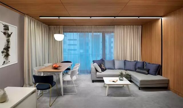 这个小客厅也是客餐厅的设置,但是面积更加紧张一点,虽然餐桌和沙发离的很近,但是对于一平米都很宝贵的小户型来说是很不错的方式!