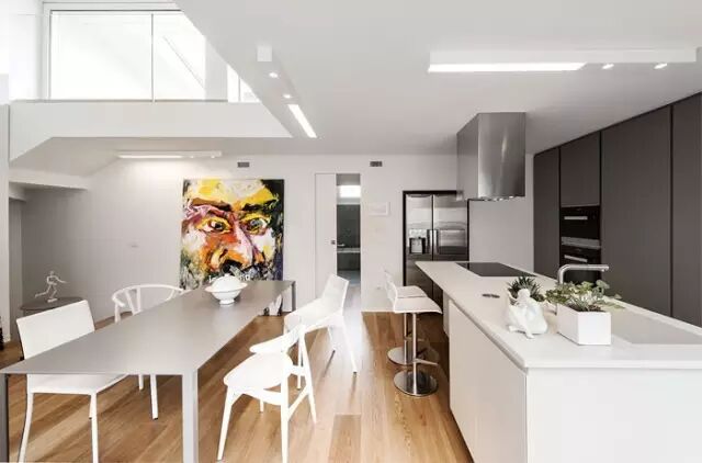 对于这个厅来说,虽然是一个厅,但是同时做了开放式厨房和餐厅的设置,这样一来,虽然不是小户型,但是小户型也完全可以借鉴这个方法来安排自己的小厅。