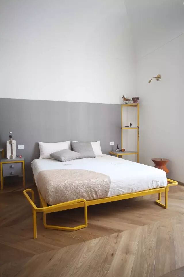 不论地板本身颜色深浅,方块与方块之间严密有序的拼接方式,一种严谨的美感在空间爆发。