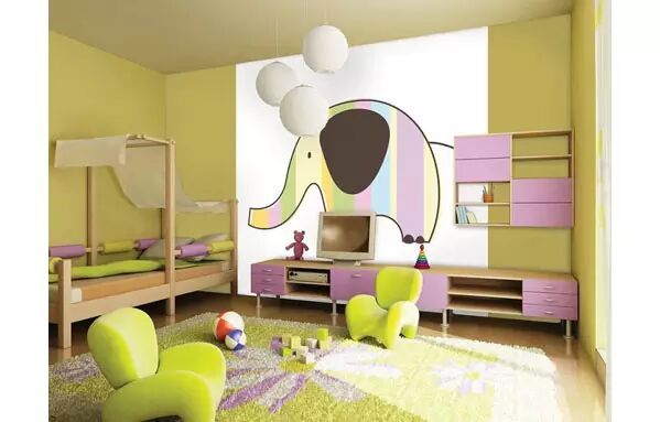 儿童房内的陈设应与儿童的身份相符,避免不搭调。像书柜、写字台、睡床等主要家件更应注意。不赞成小孩睡成人床。成人床放在儿童房会造成诸多不便。非但占地方,挤走了房间里有限的活动空间,没有活动空间的儿童房是不能容忍的。同时,这种搭配法也打乱了物品与人一一对应的隐秘原则。从风水上评说,它们显得没大没小,缺乏条理,秩序紊乱。