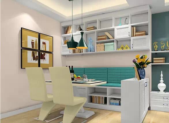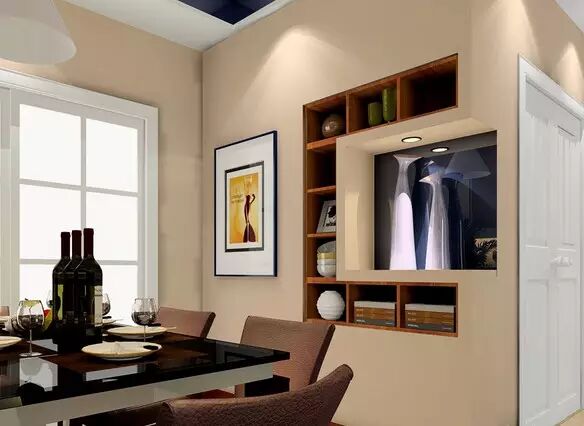 小餐厅的墙面怎样才不单调?内嵌式的装饰柜别有一番情调。