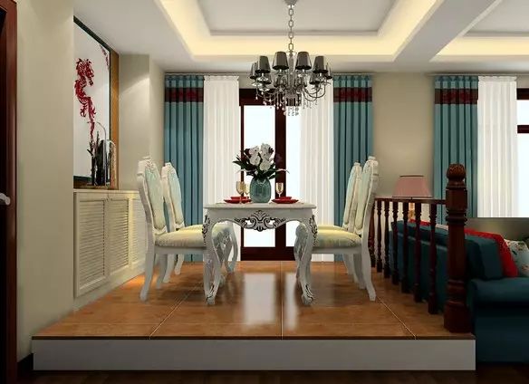 用栏杆隔开的餐厅区,好像隔出了一个独立的浪漫空间。