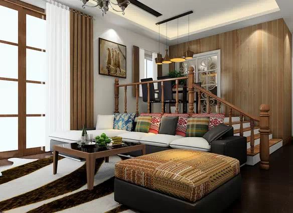 客厅比较宽敞,沙发后面的位置不想空着,又不想摆放笨重的储物柜,可以用梯台营造一个小区域,让空间更有层次感。
