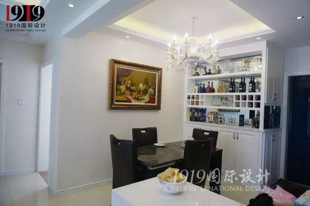 酒柜设立在餐厅,既方便,又节省了空间,让房间看上去不再那么的狭促。