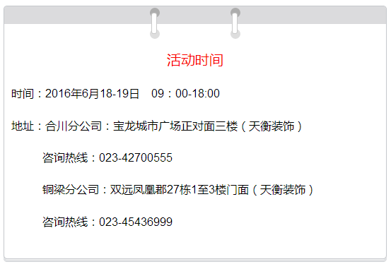合川分公司:宝龙城市广场正对面三楼(天衡装饰)