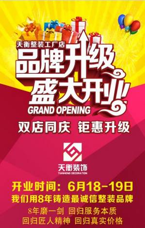 6月18-19日来捡趴活,天衡整装工厂店全场品牌升级,价格更低、钜惠升级开业
